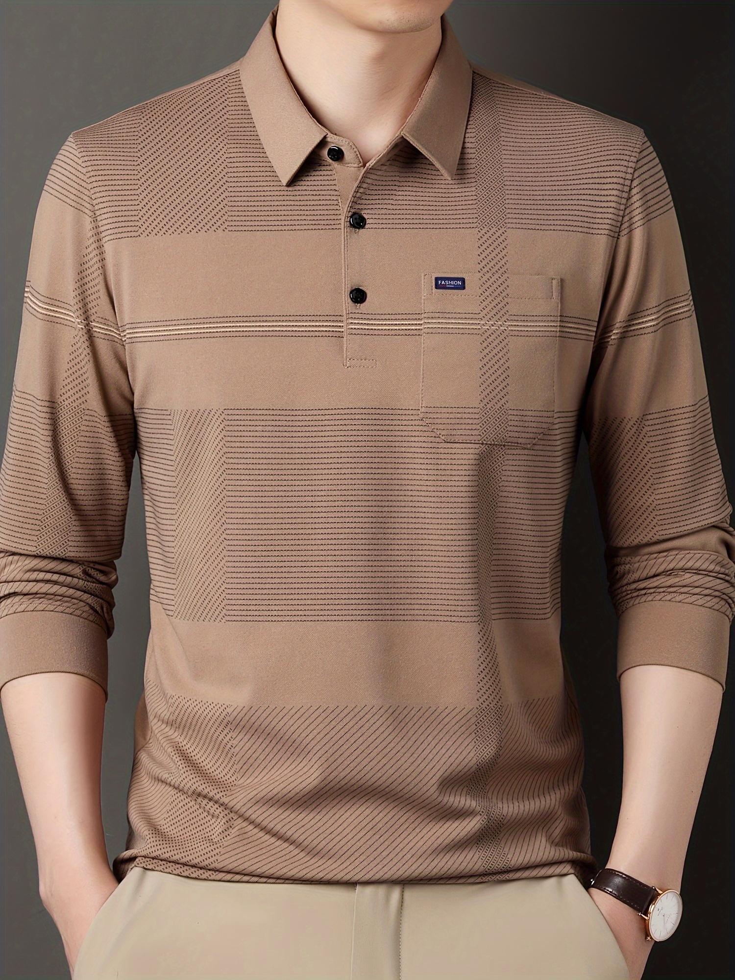 Men's Casual Lapel Shirt, Elegant Lapel Long Sleeve Tops