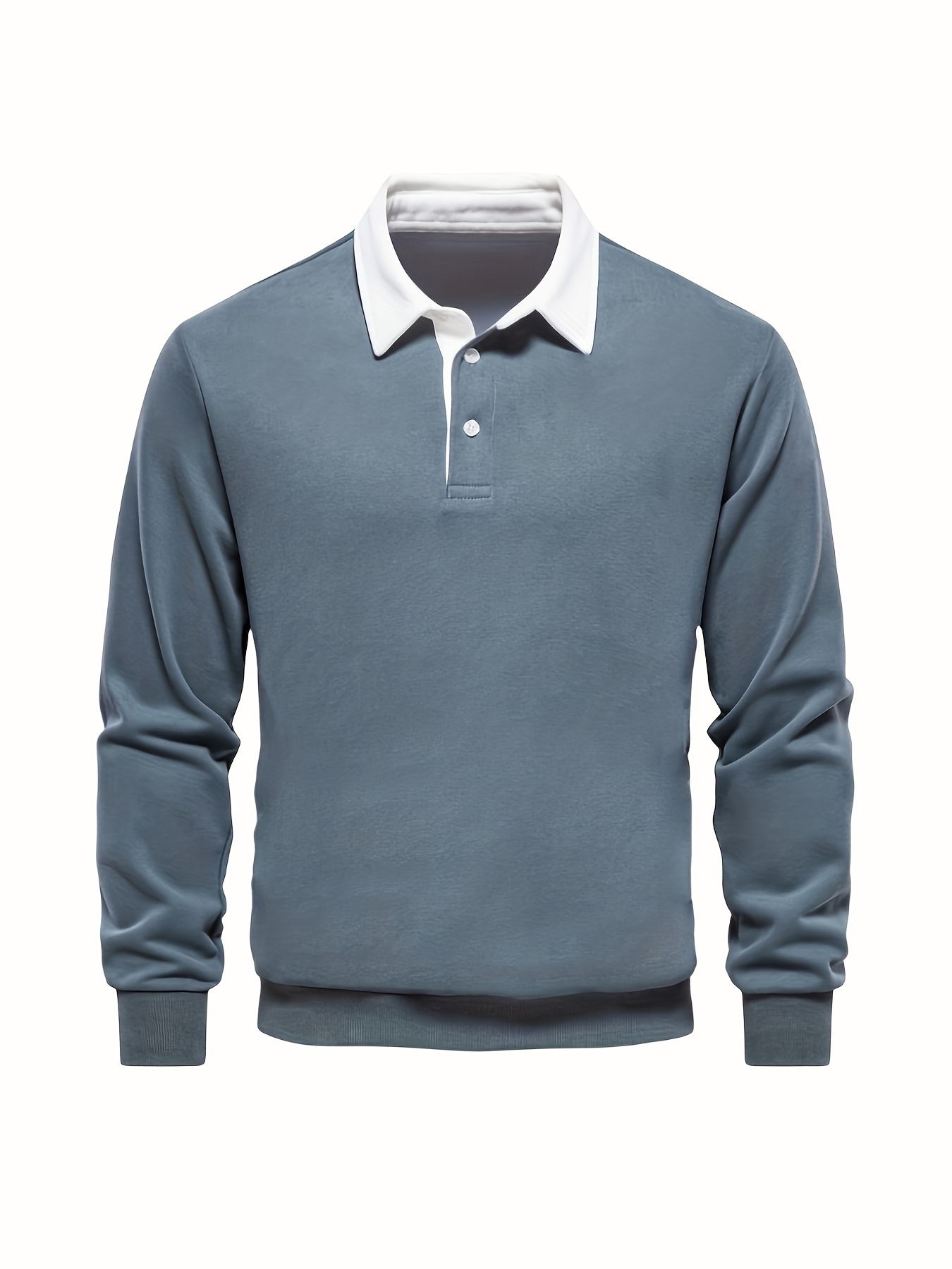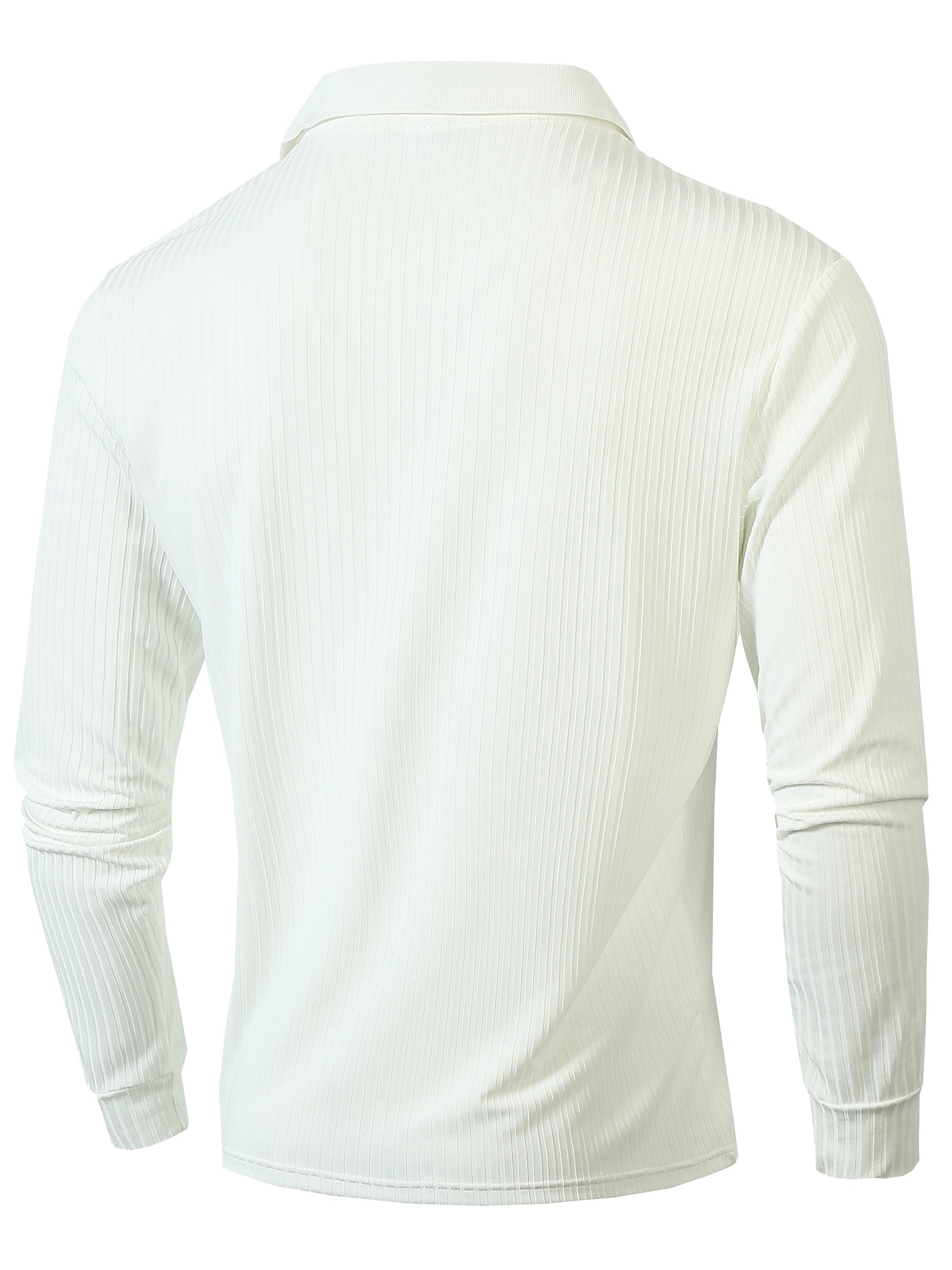 Ribbed Men's All-match Sweetheart V-neck Long Sleeve Lapel Shirt, Spring Fall Outdoor Activity