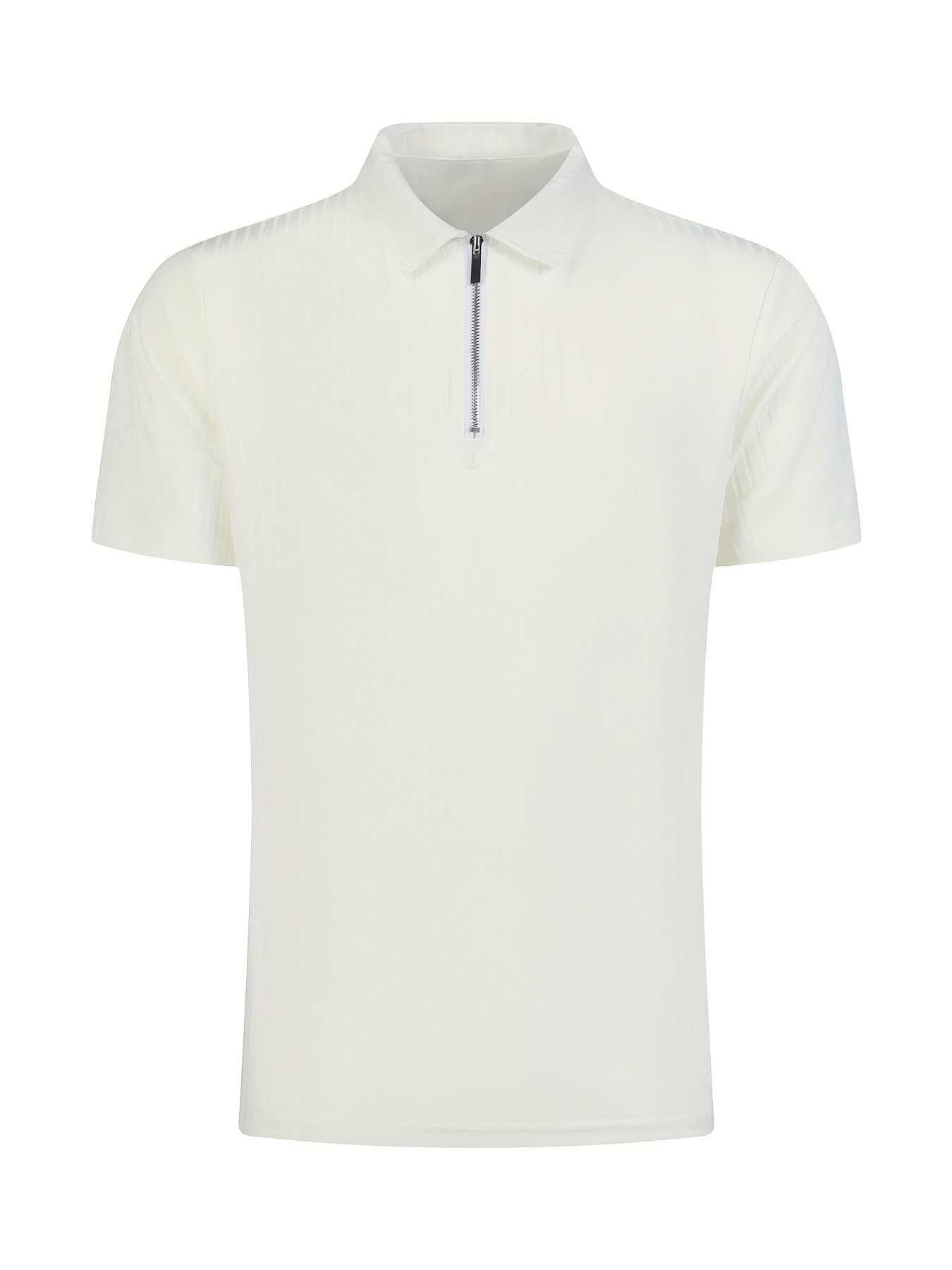 Casual Knitted Men's Ribbed Short Sleeve Comfy Zipper Lapel Shirt For Summer Outdoor