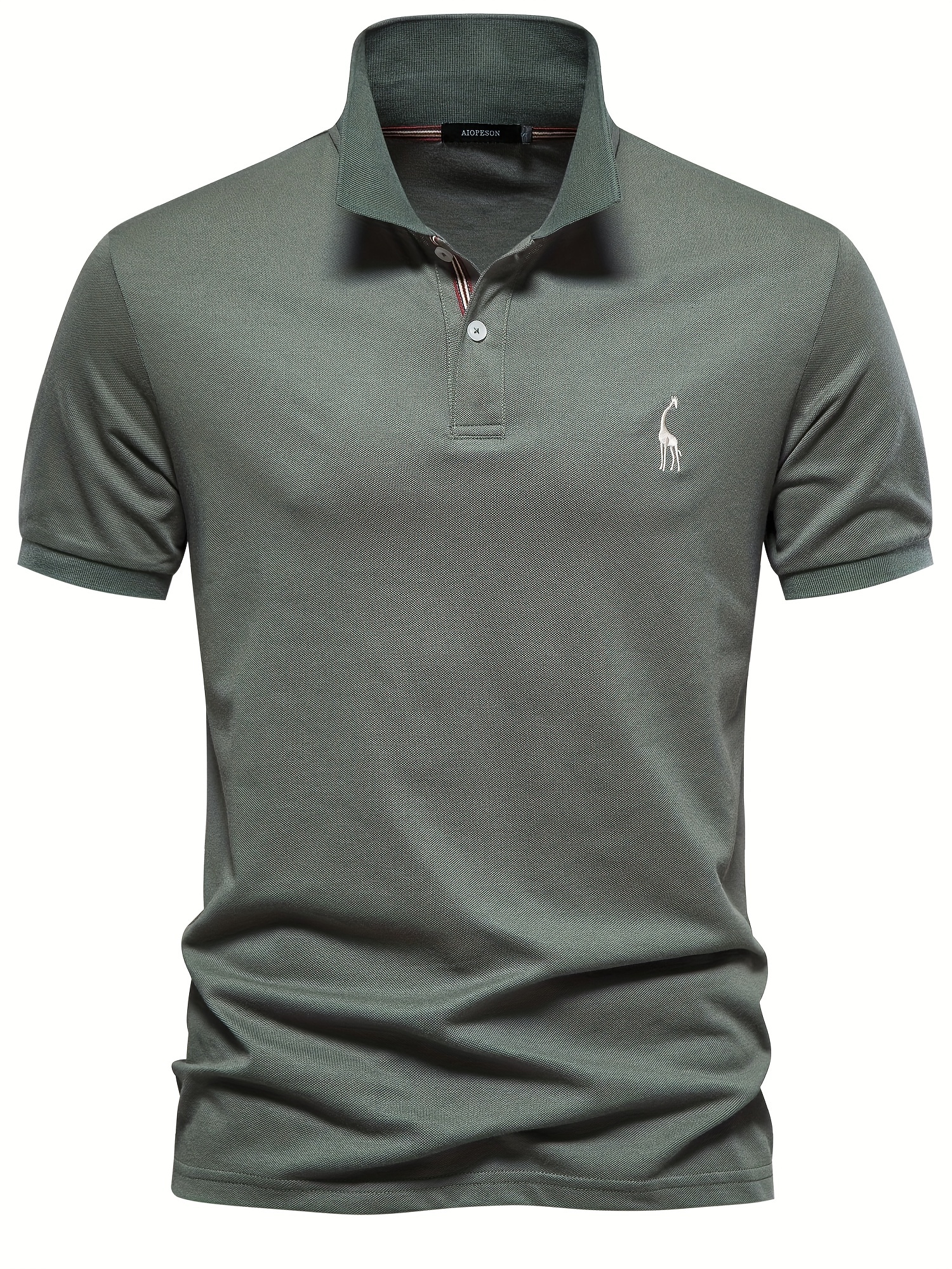 Men's Solid Giraffe Embroidery Short Sleeve Lapel Shirts, Men's Fashion Leisurewear For Spring Fall Golf Sports