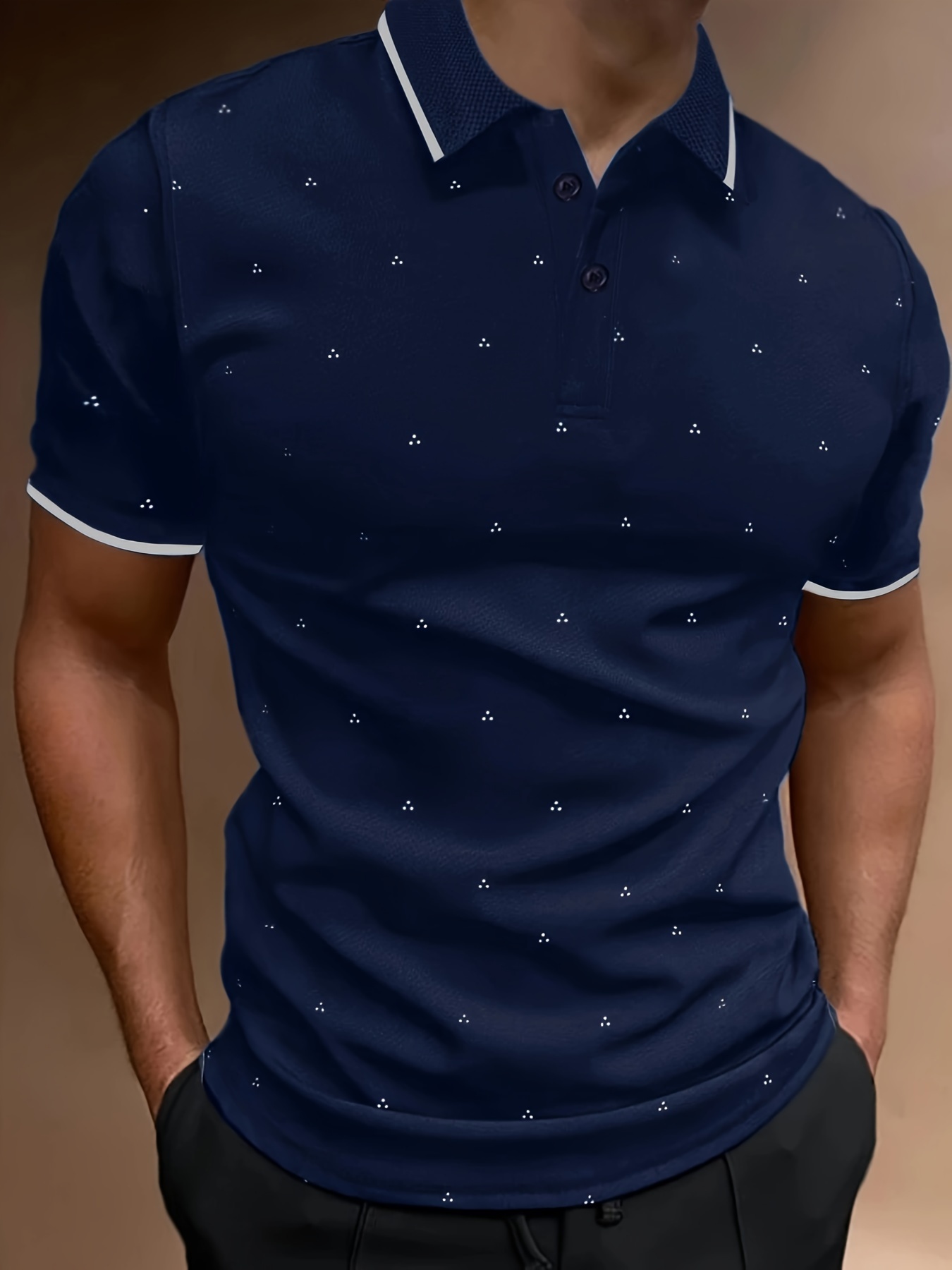 Casual Contrast Binding Men's Short Sleeve Lapel Sports Shirt, Summer Outdoor, Gift For Men