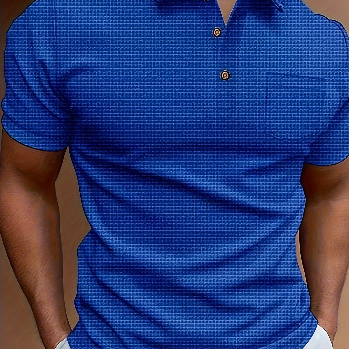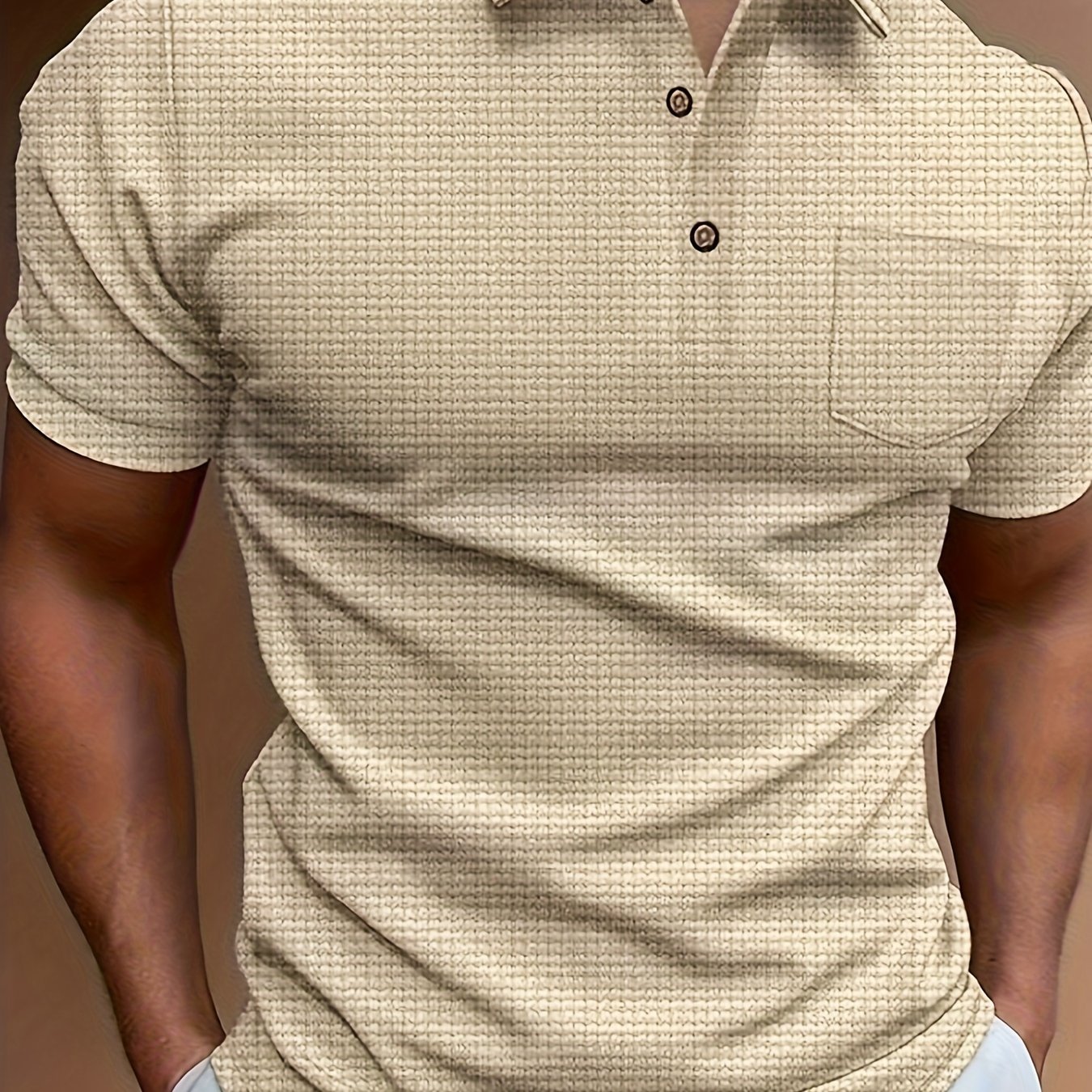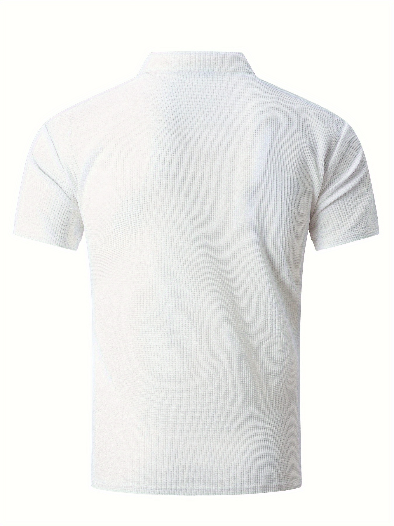 Breathable Regular Fit Waffle Golf Shirt, Men's Casual V-Neck T-Shirt Short Sleeve For Summer, Men's Clothing
