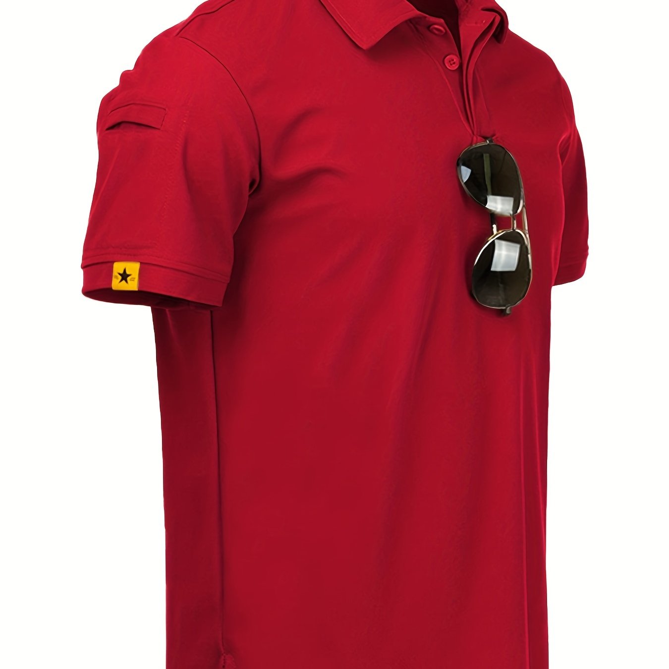 Classic Design Golf Shirt, Men's Casual Mid Stretch Short Sleeve Lapel Shirt For Summer