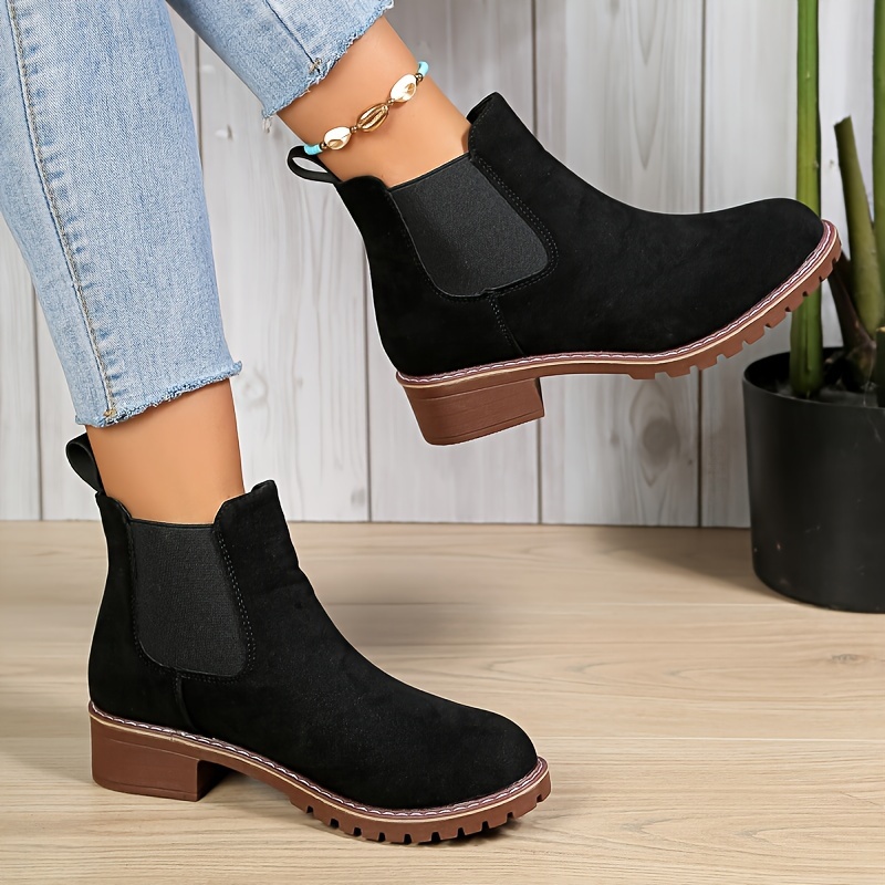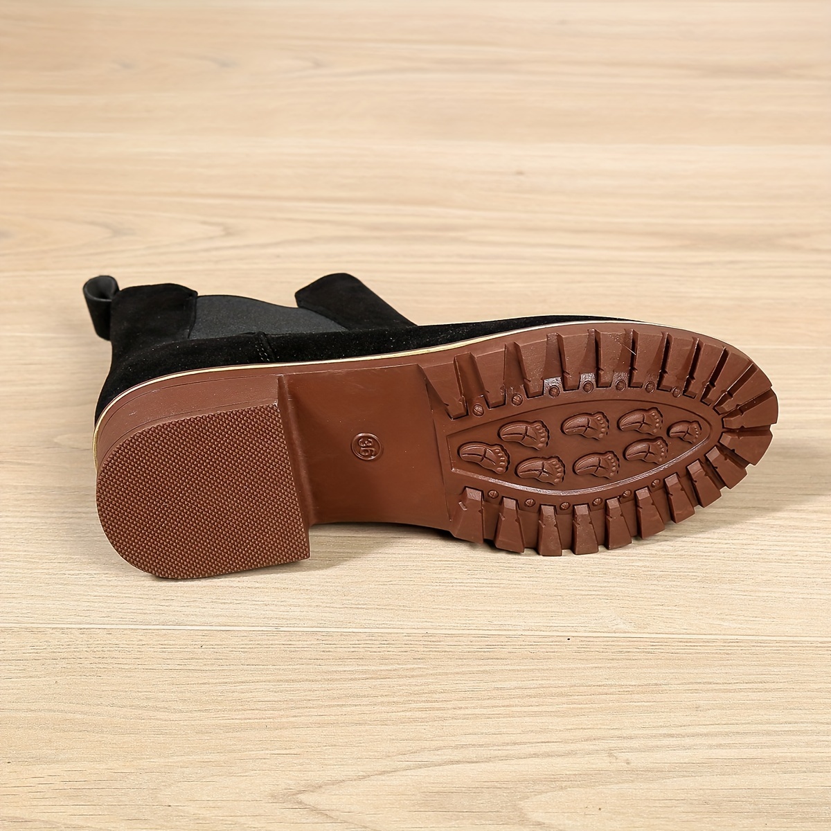 Comfort & Style in One: Women's Solid Color Flannel Winter Boots with Slip-On Design, Platform Heel- Perfect for a Trendy, Warm, Winter Look!