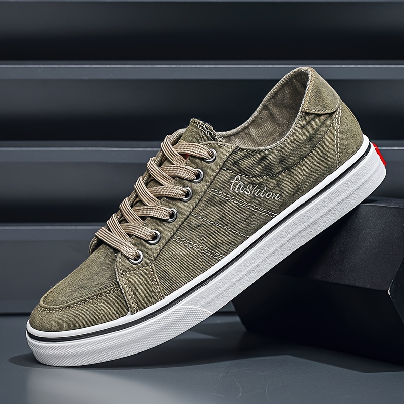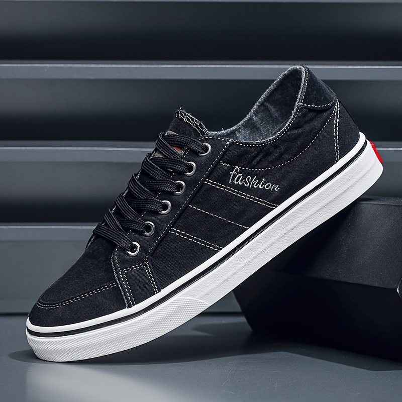 Men's Solid Color Low Top Canvas Shoes, Comfy Non Slip Breathable Lace Up Skateboard Shoes For Men's Outdoor Activities
