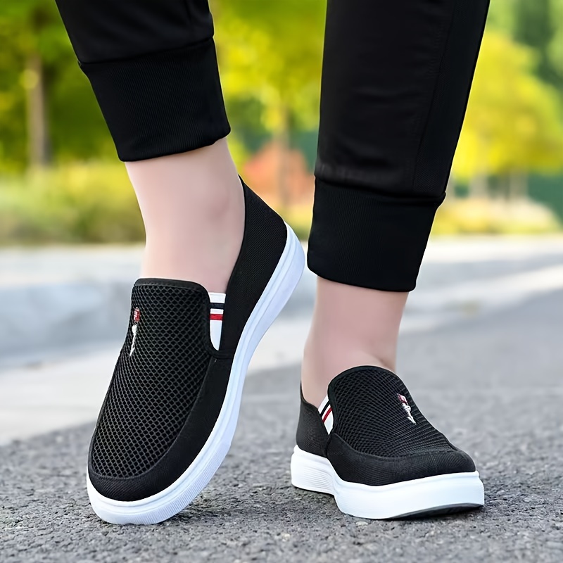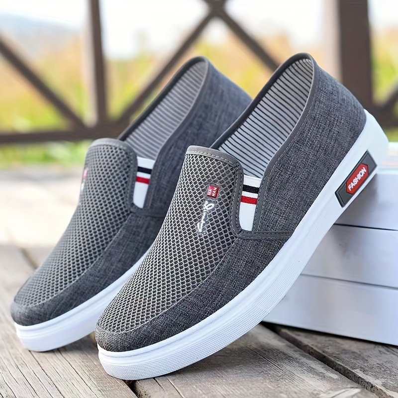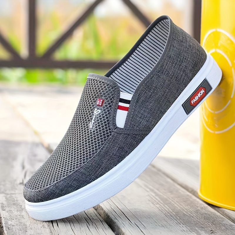 Men's Solid Color Slip On Breathable Walking Shoes, Comfy Non Slip Rubber Sole Durable Loafer Shoes, Men's Footwear