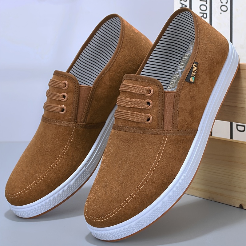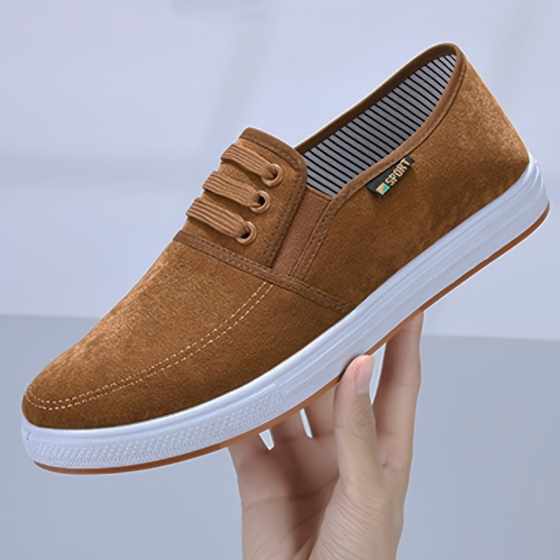Inner Material: Fabric Sole Material: PVC Upper Material: Suede Patterned: Solid color Closure Type: Slip On Scene: Casual Outdoor Street Style: Sports Fashion Minimalist Seasons: All-season Toe Cap: Round Toe Applicable People: Male