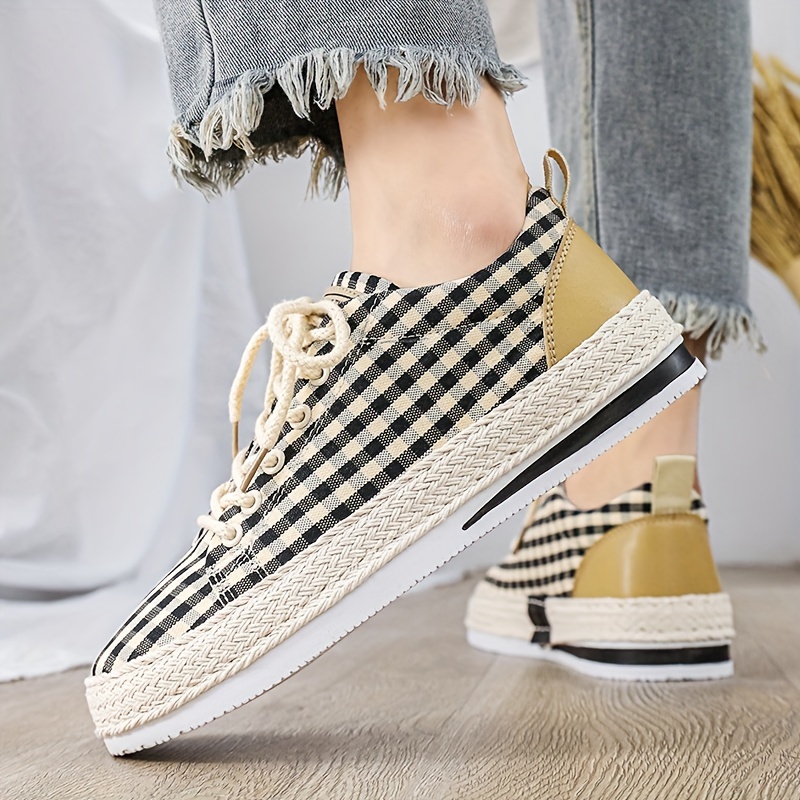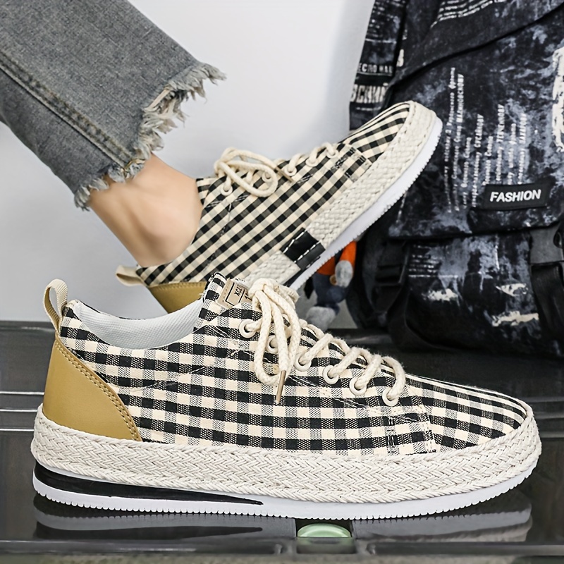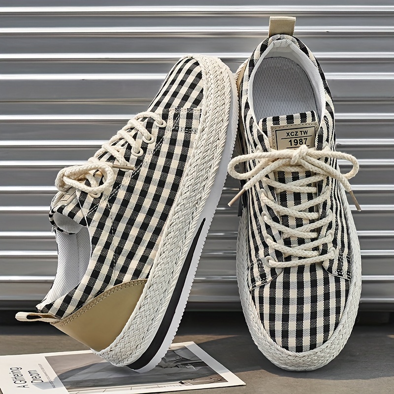Inner Material: Fabric Sole Material: PVC Upper Material: Fabric Patterned: Plaid Closure Type: Lace Scene: Party England Style: Street Trendy Seasons: All-season Toe Cap: Round Toe Applicable People: Male