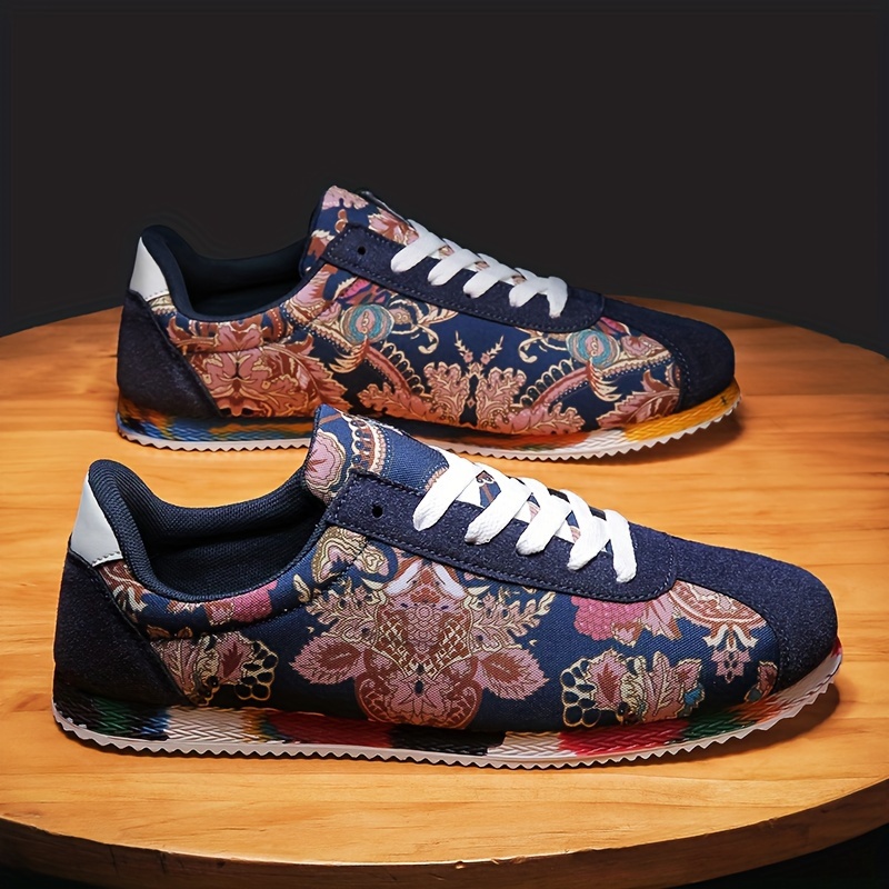 Men's Trendy Traditional Dragon Pattern Embroidered Canvas Shoes, Comfy Non Slip Rubber Sole Rubber Sole Walking Shoes
