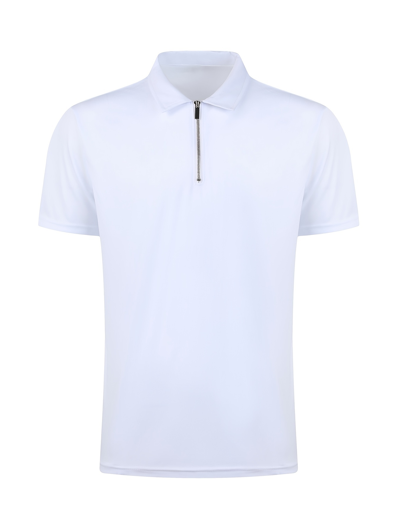 Solid Color Men's Casual Short Sleeves Zipper Shirts, Lapel Collar Tops Pullovers, Men's Clothing For Summer