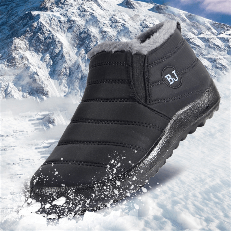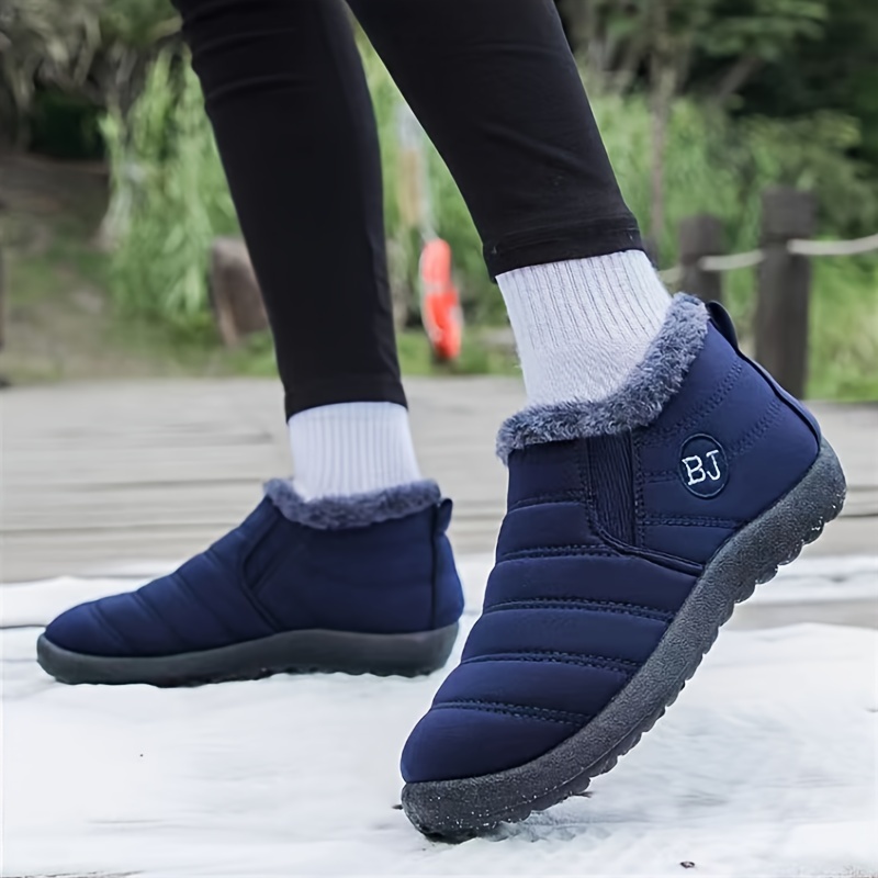 Women's Plush Lined Snow Boots, Solid Color Waterproof Slip On Thermal Ankle Boots, Winter Warm Outdoor Flat Boots