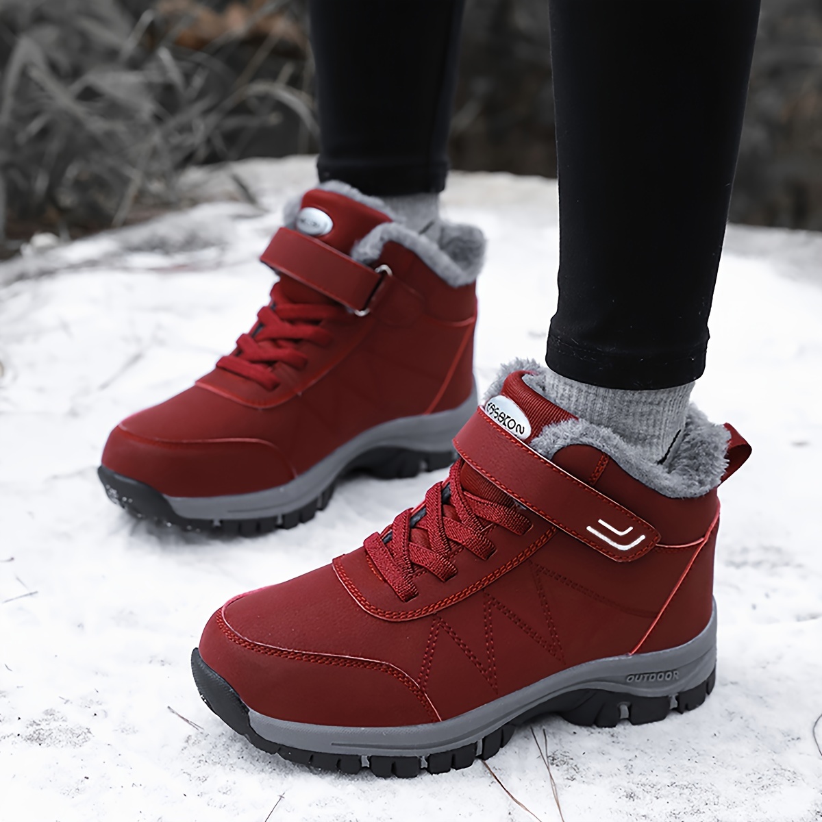 Women's Solid Color Fluffy Boots, Lace Up Soft Sole Platform Warm Lined Boots, Winter Non-slip Snow Boots